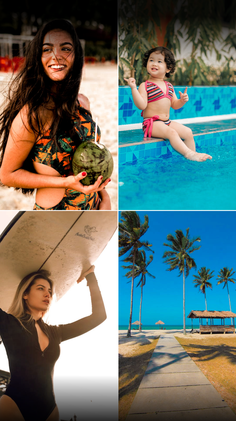 Ideale per sabbia, palme, spiagge, sport acquatici, piscine, natura, foto del corpo.
